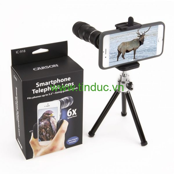Phụ kiện: Ống kính Telephoto 6x, Bộ chuyển đổi điện thoại thông minh & Chân máy, hướng dẫn sử dụng.
